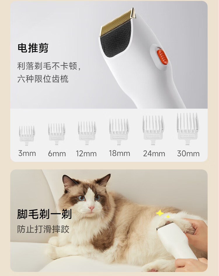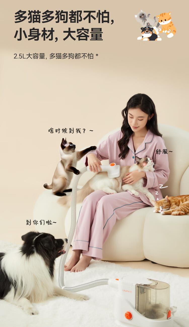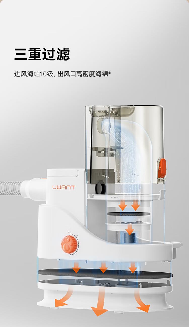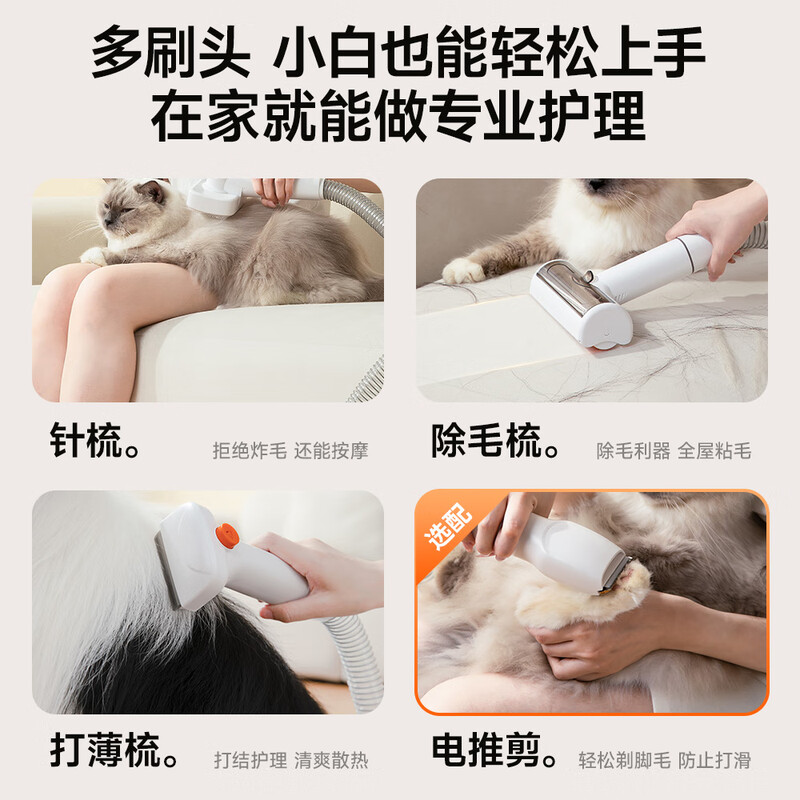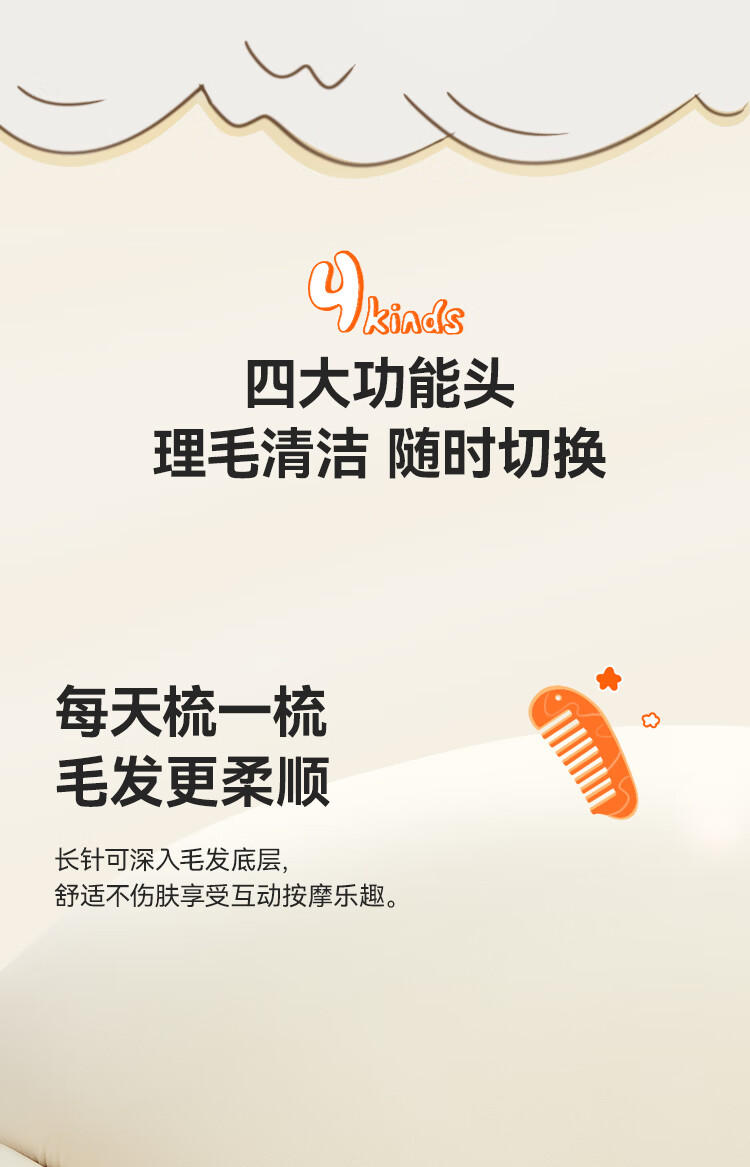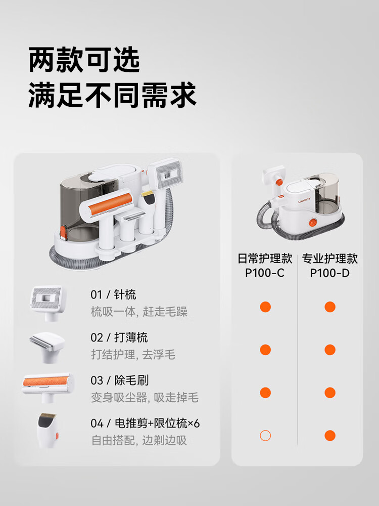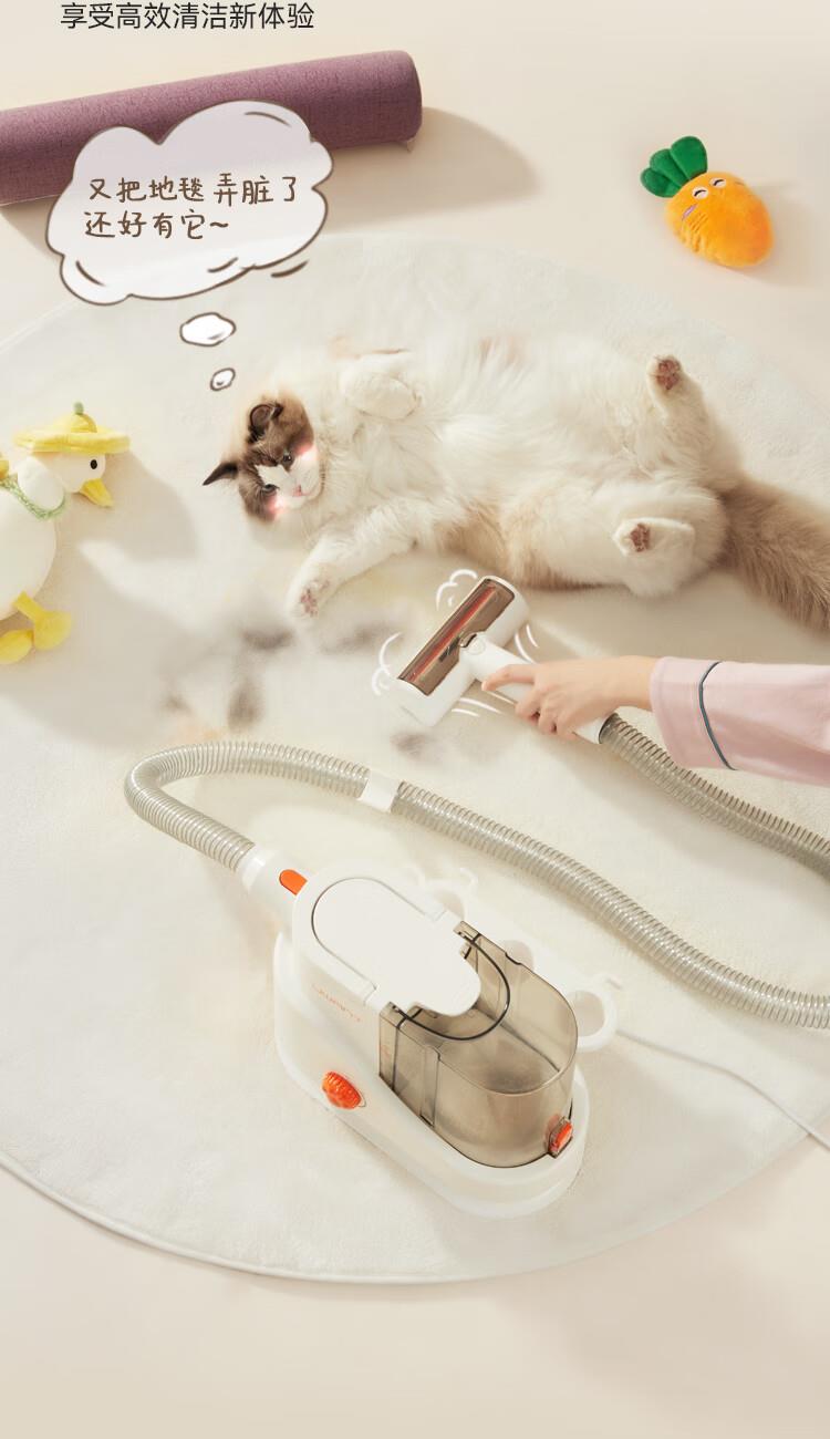 额定功率:350W 整机尺寸: 331*176*252mm 整机重量:3kg(日常护理版) 整机噪音:62dB(A)~67dB(A) 吸力:13kPa 集尘容量:2.5L 300根细密针、135°弯角、塑料包裹圆头按压回弹 一机可清洁衣服、沙发、床垫、地毯 13kPa大吸力,长毛短毛都能轻松吸走