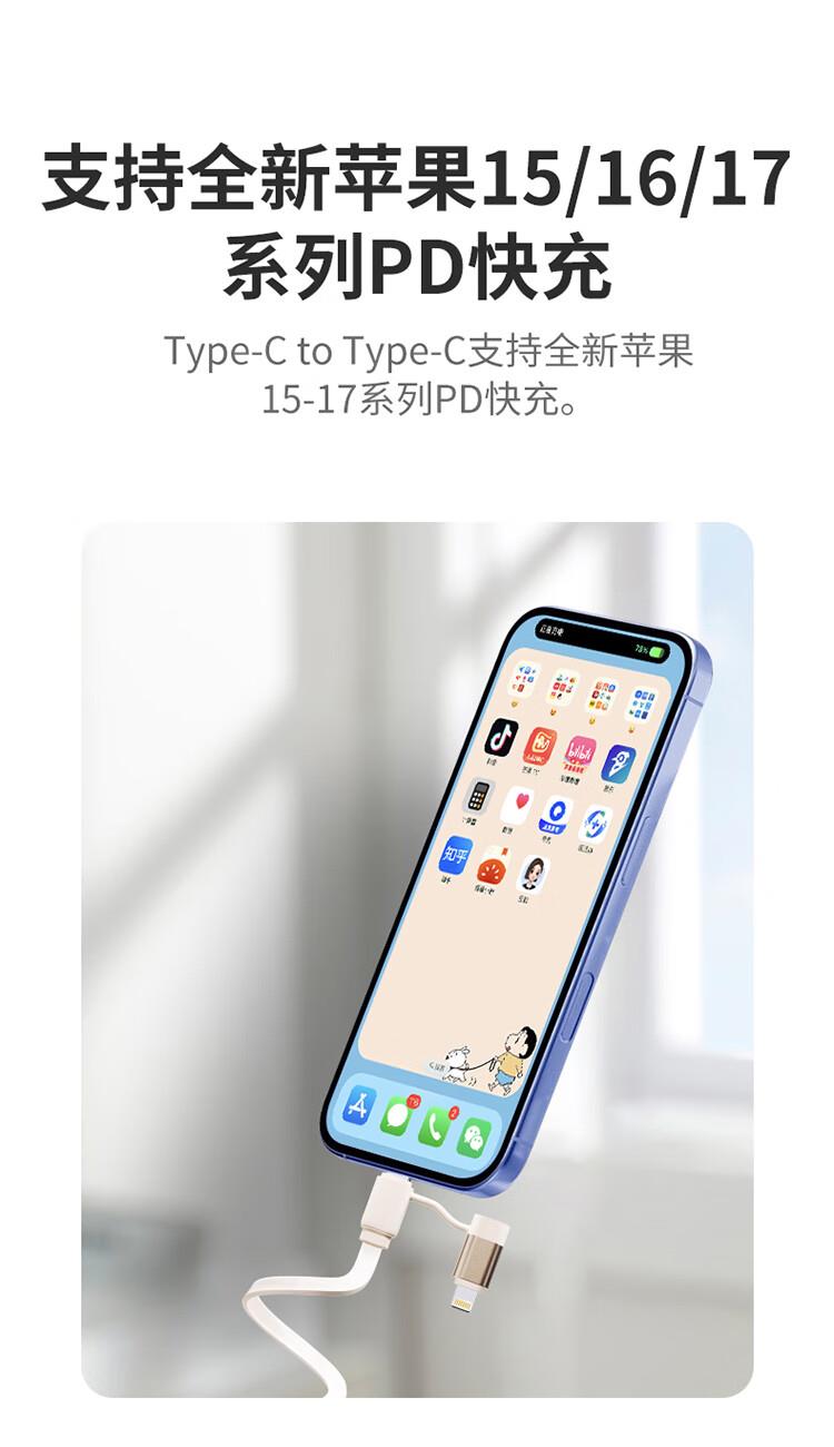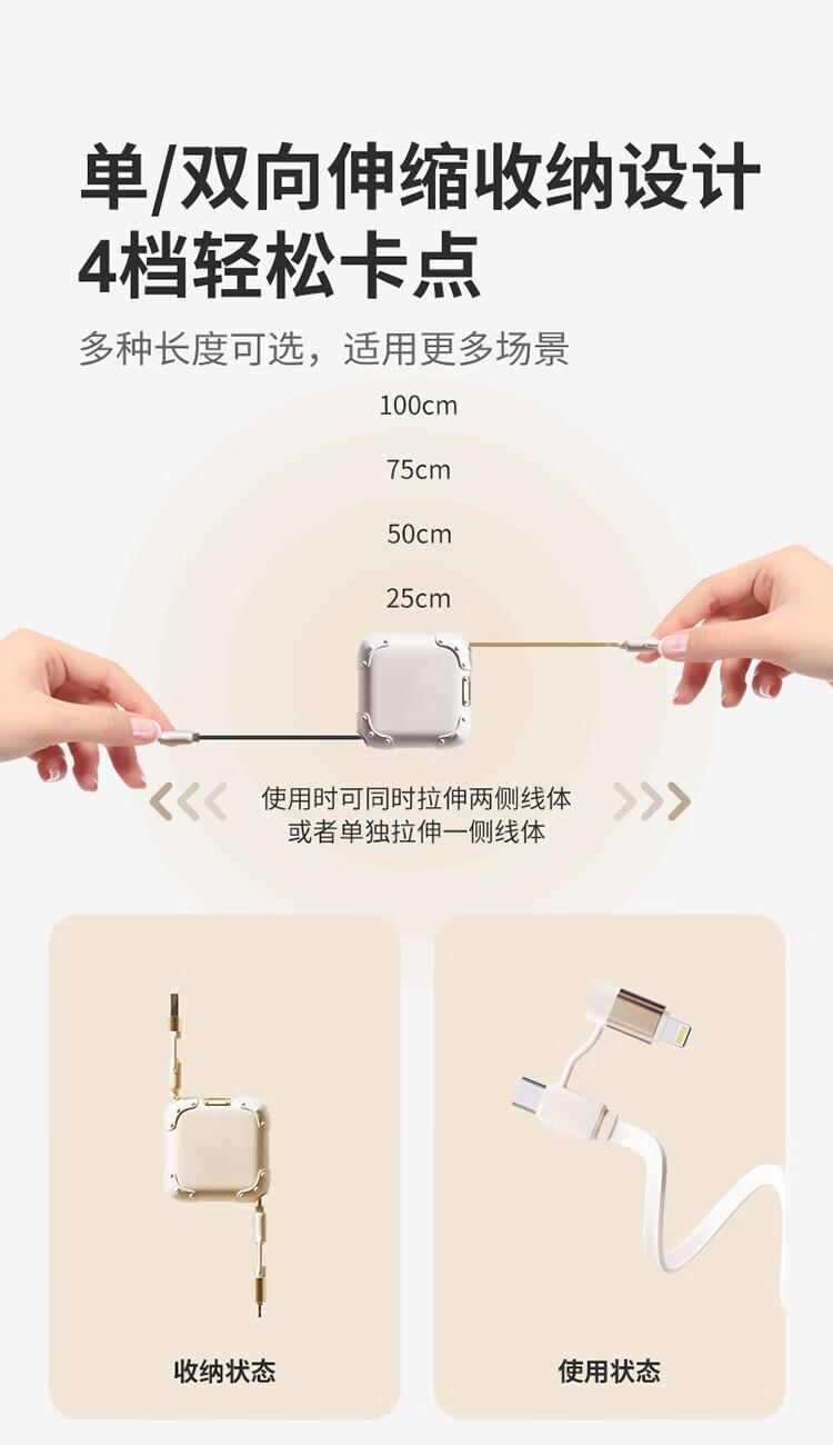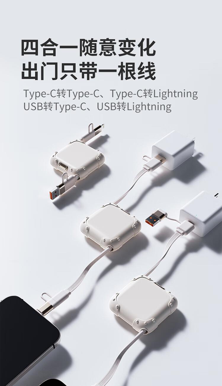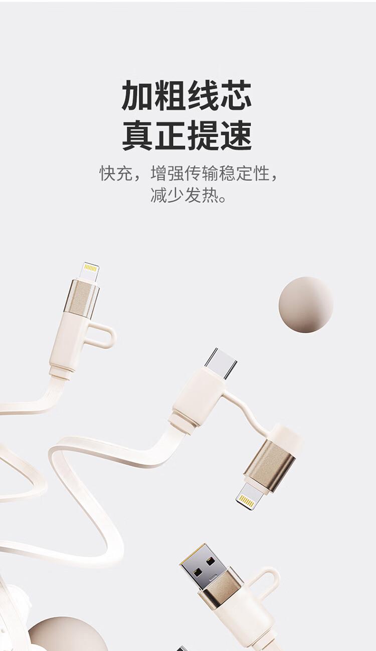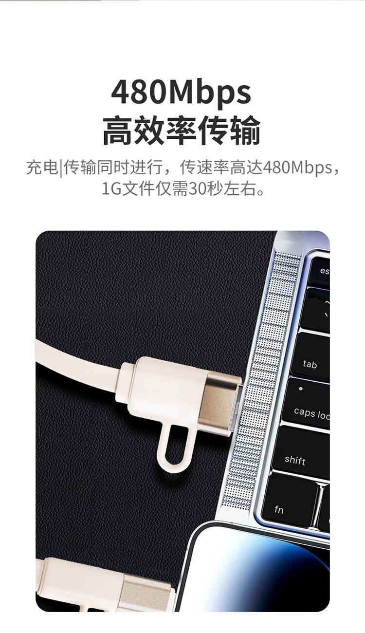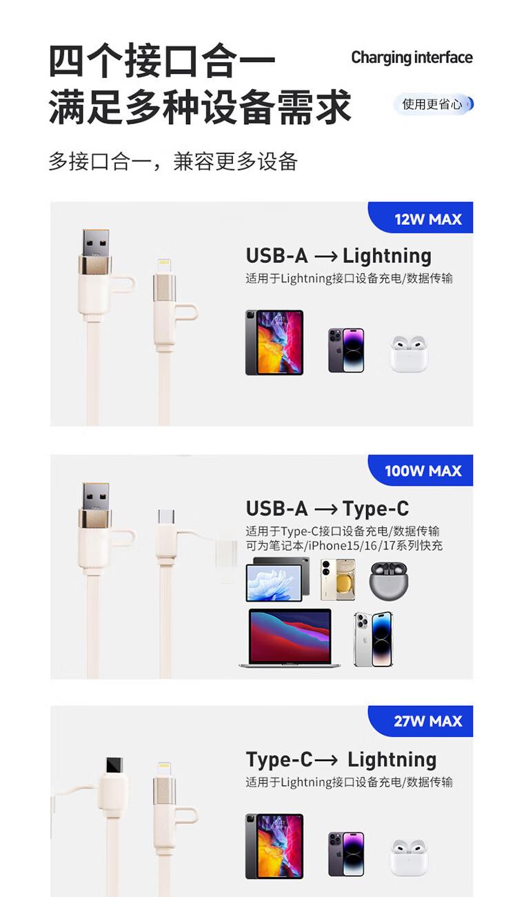 采用双头四接口设计,兼容笔记本电脑、手机等多类设备;