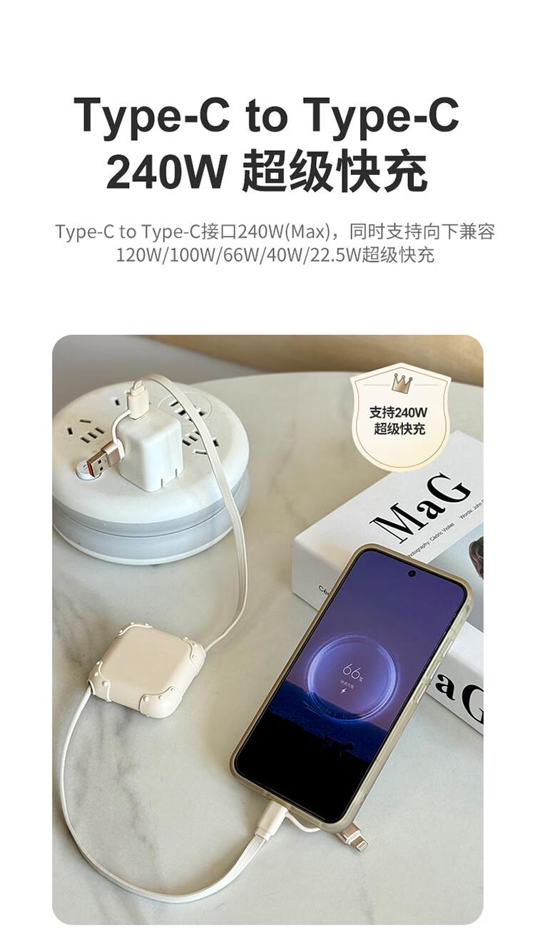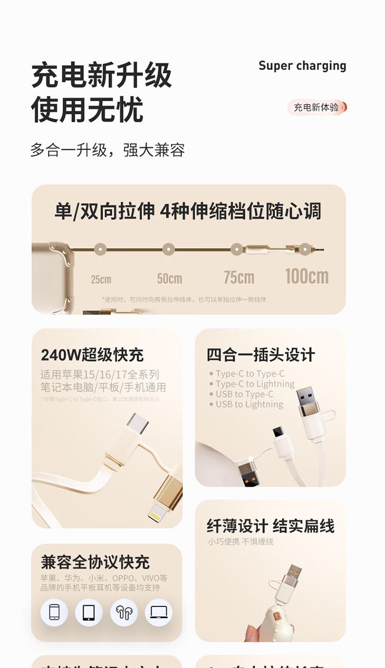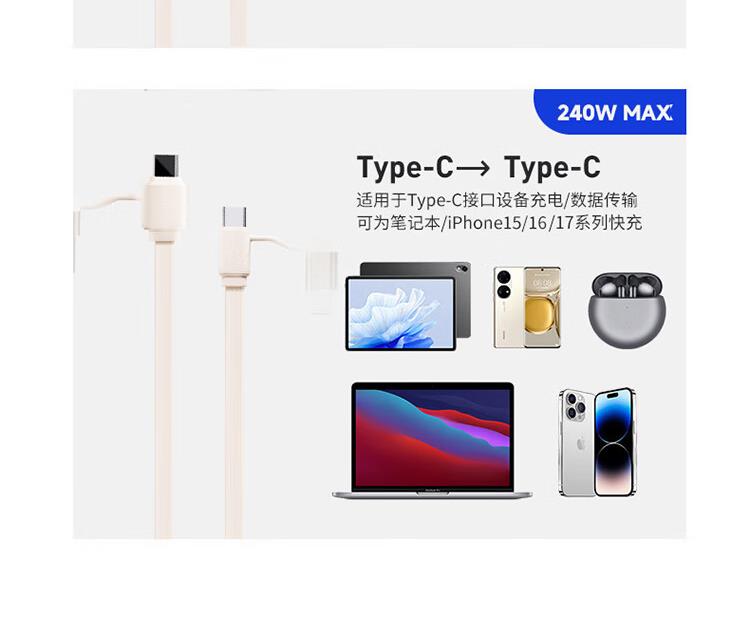 搭载 240W 大功率快充方案,充电与文件传输高效并行; 机身超薄设计,配合单手任意抽拉结构;