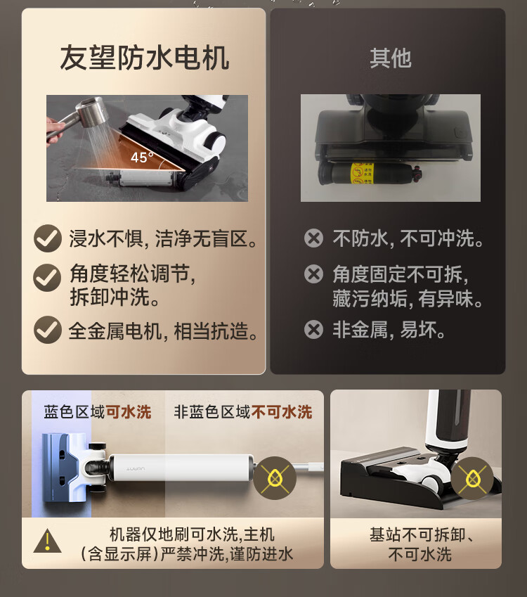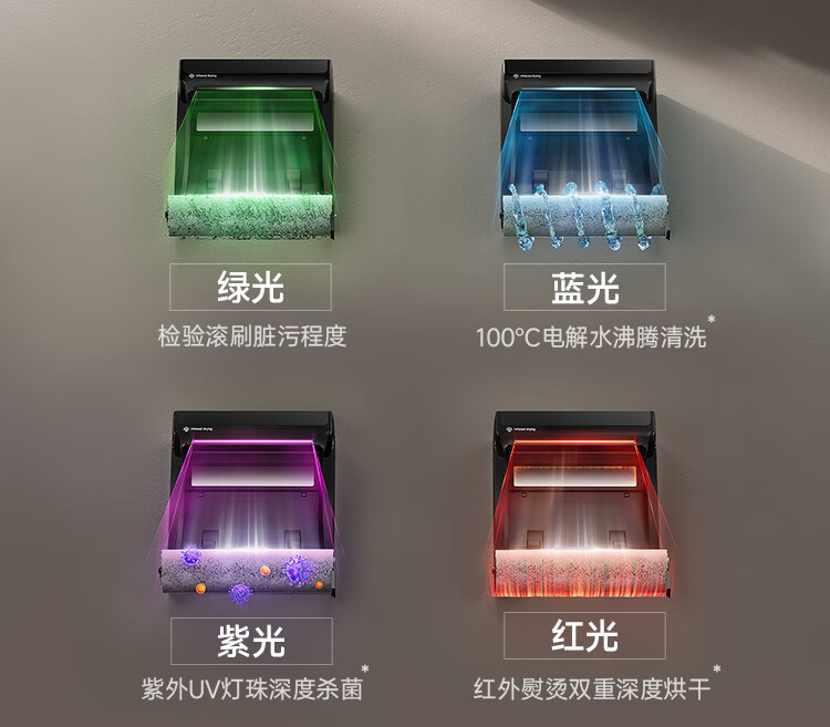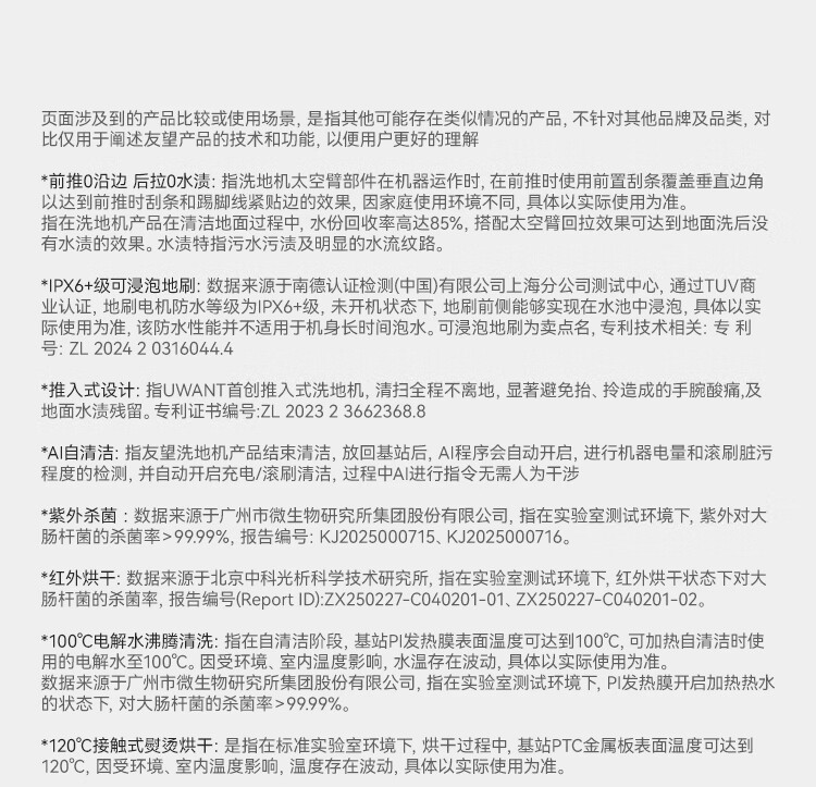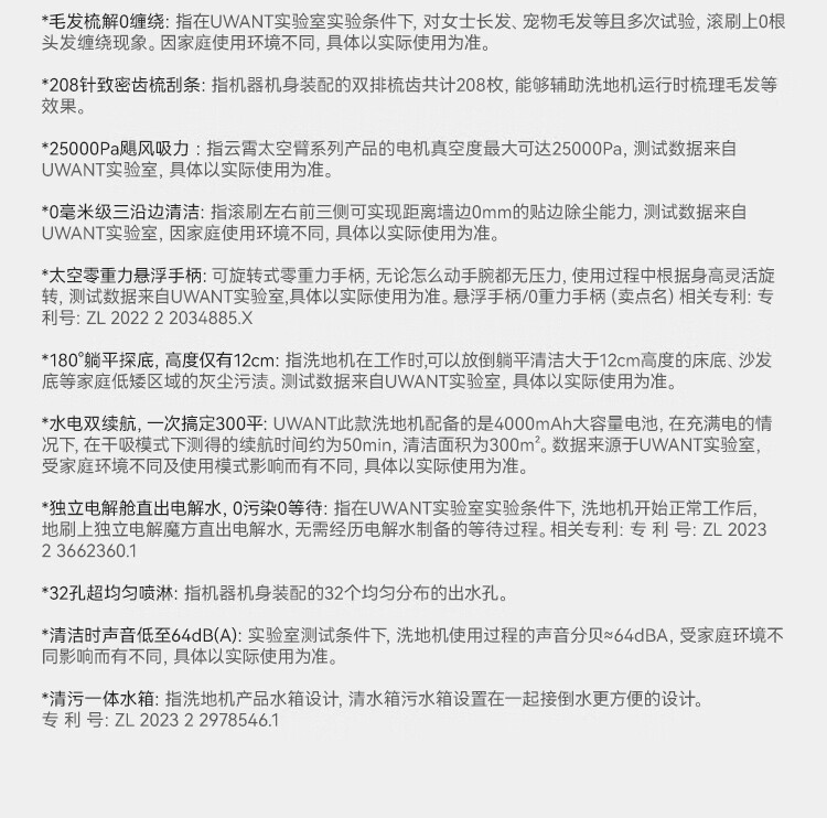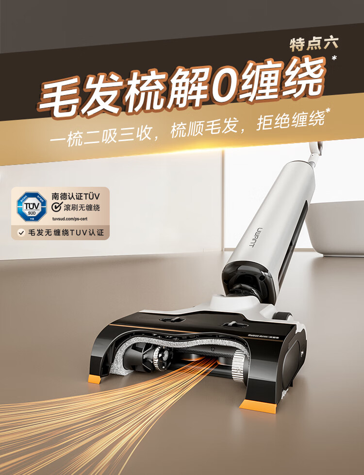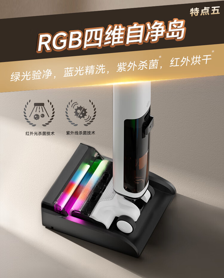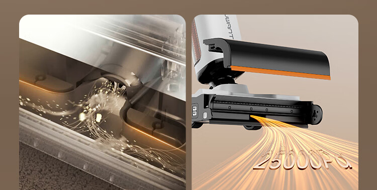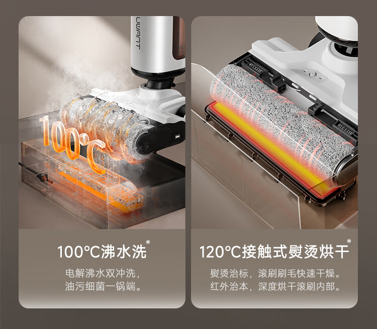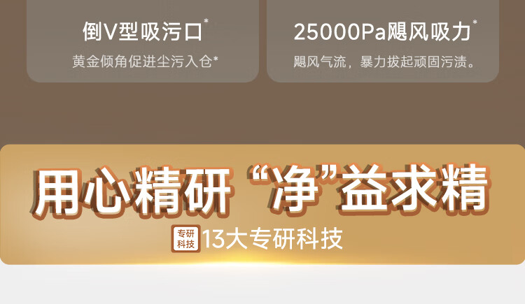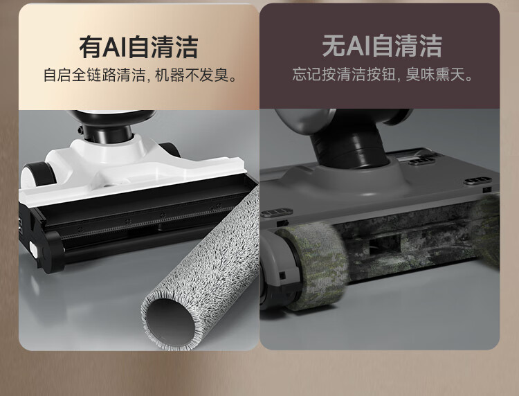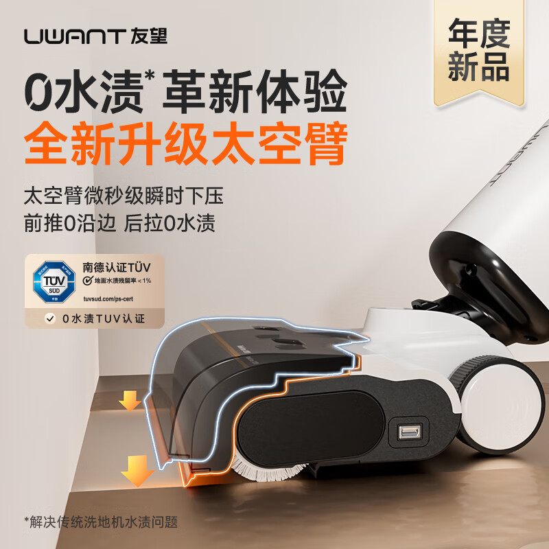 产品尺寸:266*265*1105 基站尺寸:367*330*103 产品+基站尺寸:340*329*1120mm 产品毛重:8.3kg 外箱尺寸:740*347*280mm 32微孔精密控水润湿滚刷敷面膜般均匀润泽无水痕 创新结构,贴合挤压滚刷污水源头精控不回流 太空臂速降触地,强力刮污地面干爽无水印 25000Pa强劲虹吸,污水秒清无残留