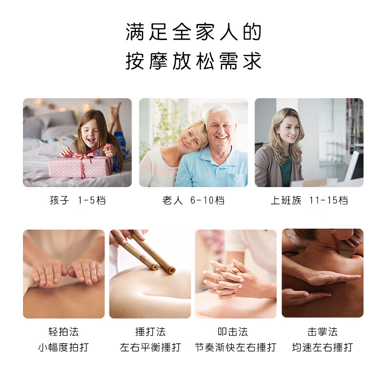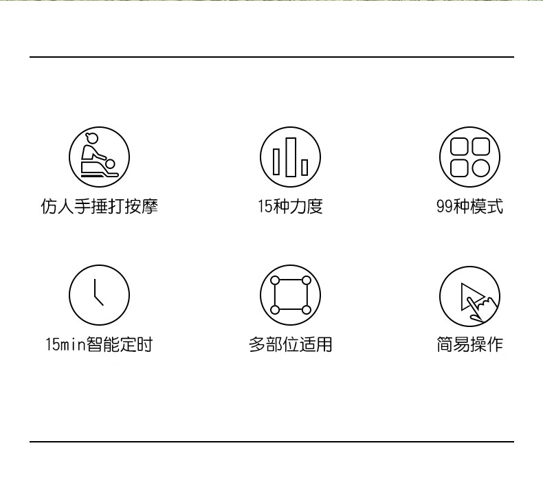 产品描述: 1、15种力度、99种模式、多部位按摩; 2、温热捶打,使用10分钟后有温热感; 3、立体剪裁,贴合身体曲线; 4、一键启动,只能液晶数显; 5、防水级品质材料、优质PU全网孔设计透气