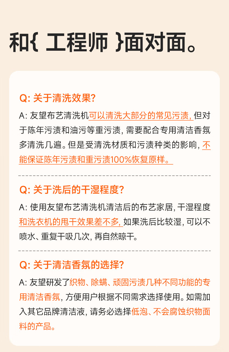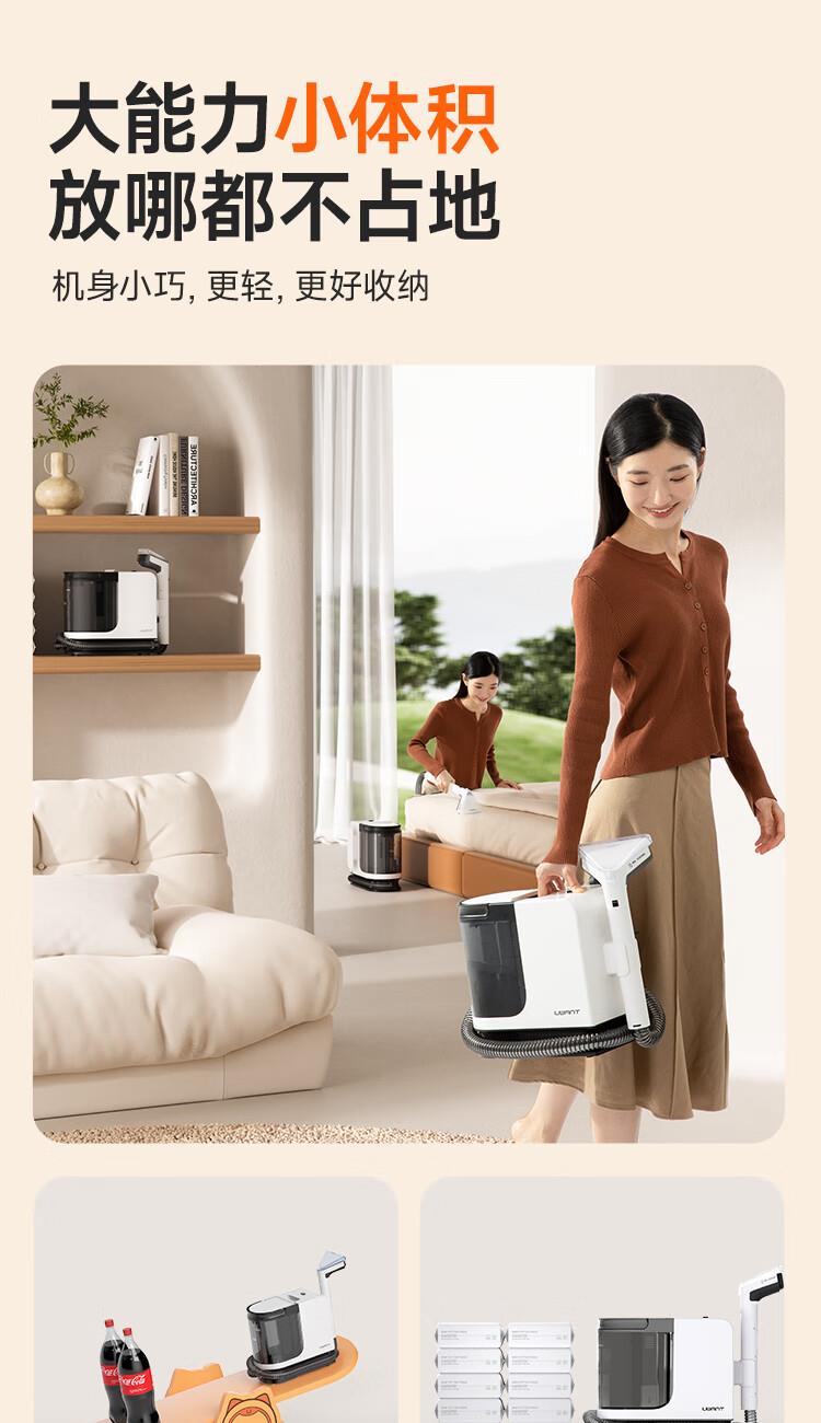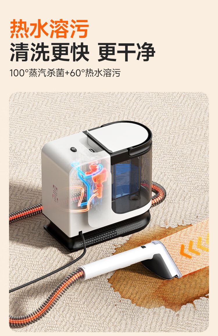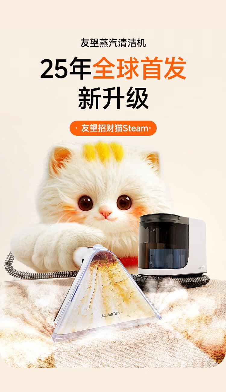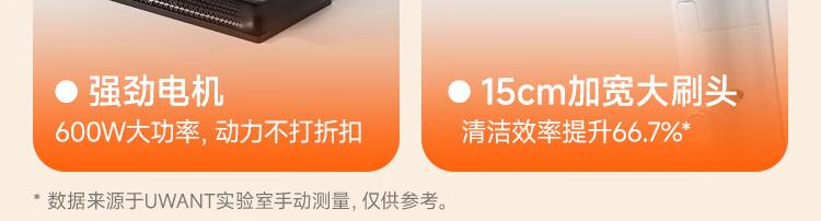 产品类目:友望蒸汽清洁机 产品吸力:16000pa 刷头配置:加宽标准布艺刷 刷片配置:灵动刷片*2 电源线长:3m 软管长度: 1.6m 双重降噪技术加持,工作声音<75dB(A) 16000Pa*低噪大吸力,吸的更深、吸的更净、干的更快!
