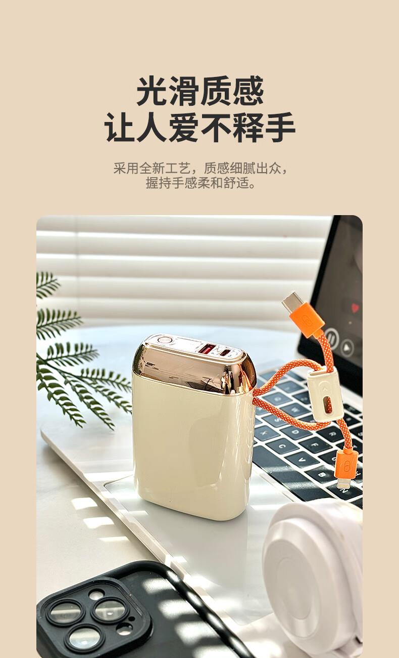 颜值与实力并存!轻薄机身,高密度电池更小巧;表面喷油,钢琴漆效果; 电镀亮金色,轻奢时尚; 20000mAh大容量,想走就走! 一“宝”在手,天下我有! 支持多种设备充电,手机、平板、耳机,统统搞定!