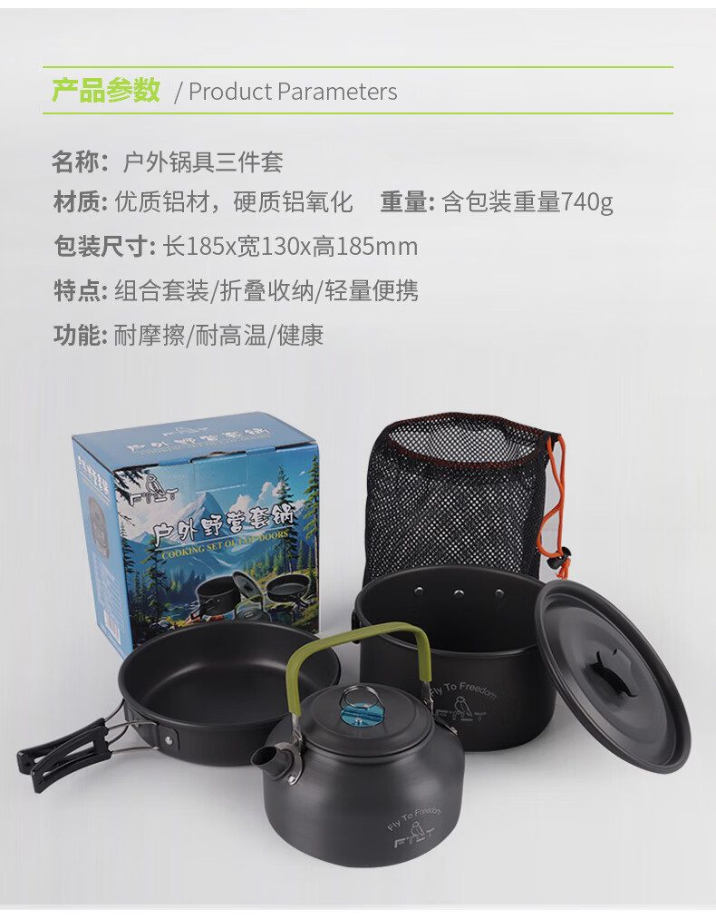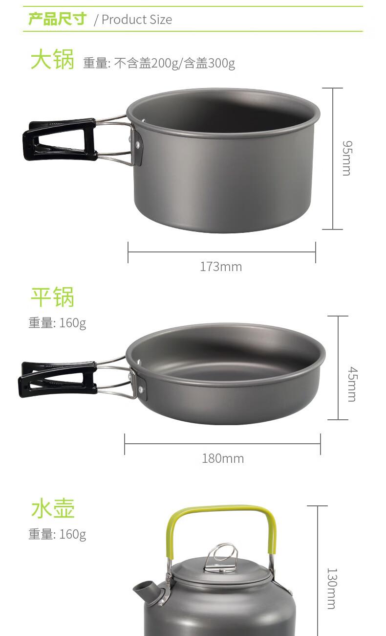 材质:氧化铝 配置:三件套+便携抽屉式烧烤架 颜色:哑光灰 净重:0.7kg