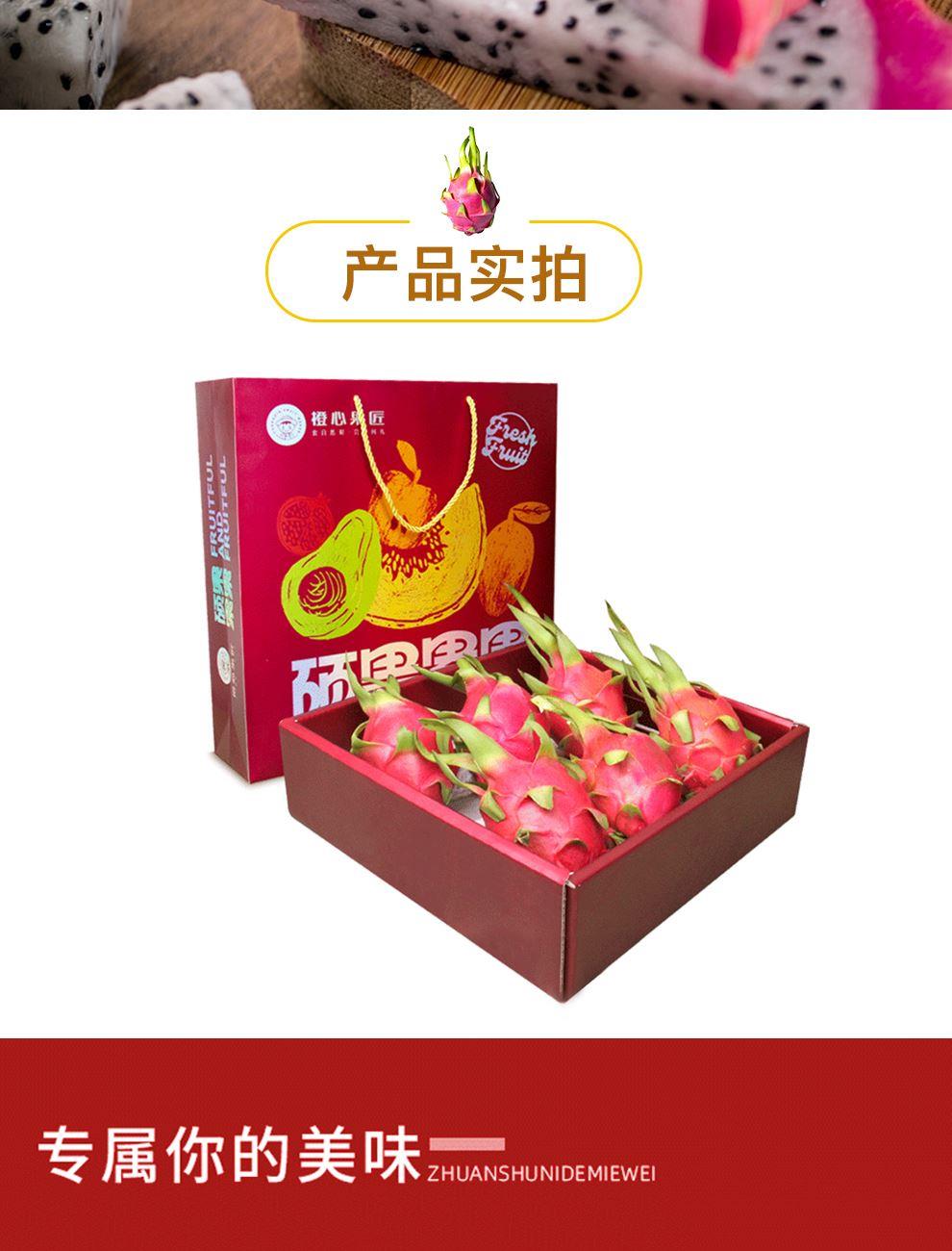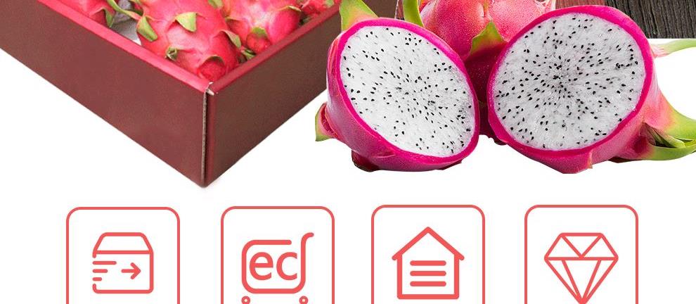 鸿运当头:越南进口火龙果 供货时间:全年 单果克重:约450g-500g左右 整箱重量:约6斤左右 单果个数:6头