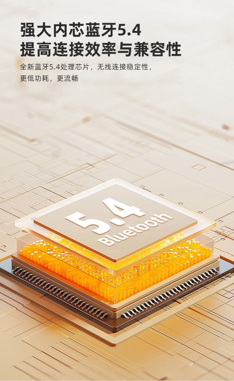 1:全新蓝牙5.4处理芯片,无线连接稳定性,更低功耗,更流畅