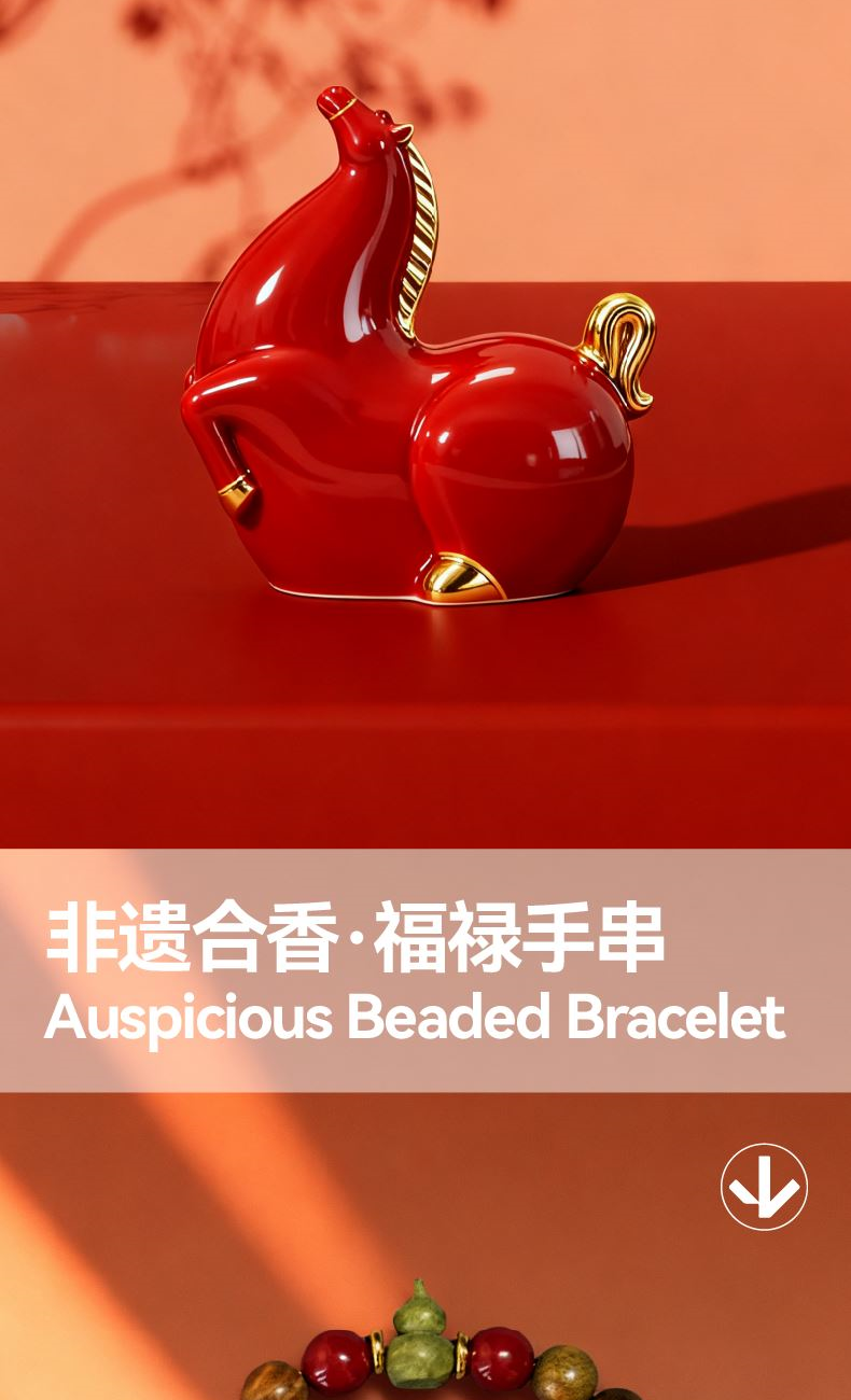 内搭马年摆件——马元元,元,取自“元宝”,象征着财富与富足,寓意新年财源滚滚。“元” 也代表开始和新生,如“元旦”,饱含着对新年新起点的美好祝愿,元复始,万象更新,马元元伴您开启一整年的好运与精彩。