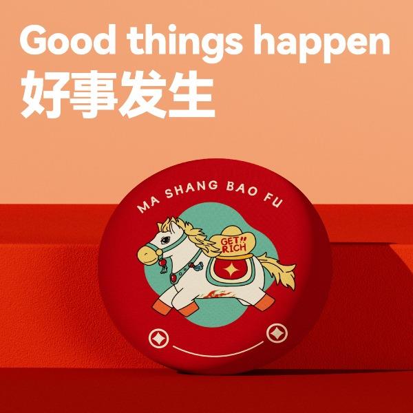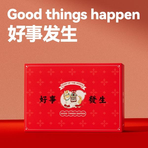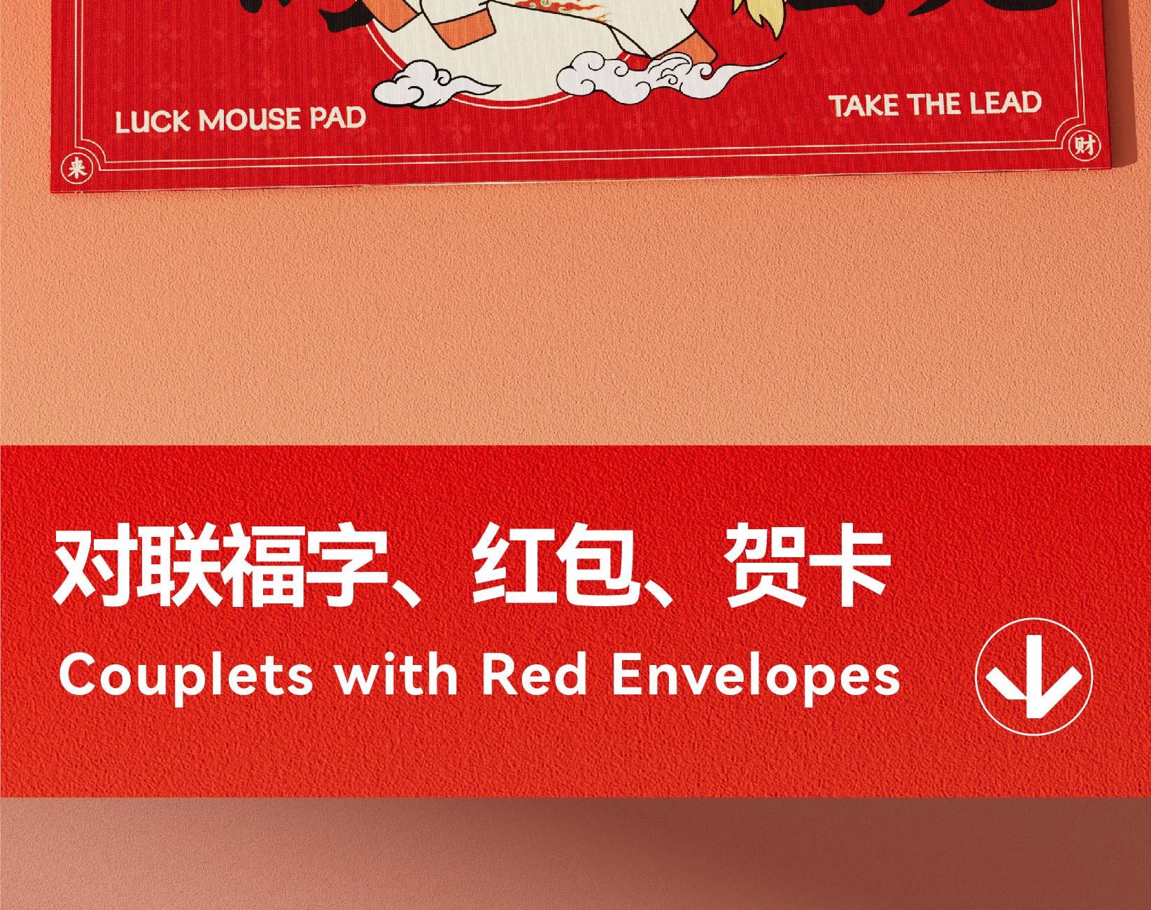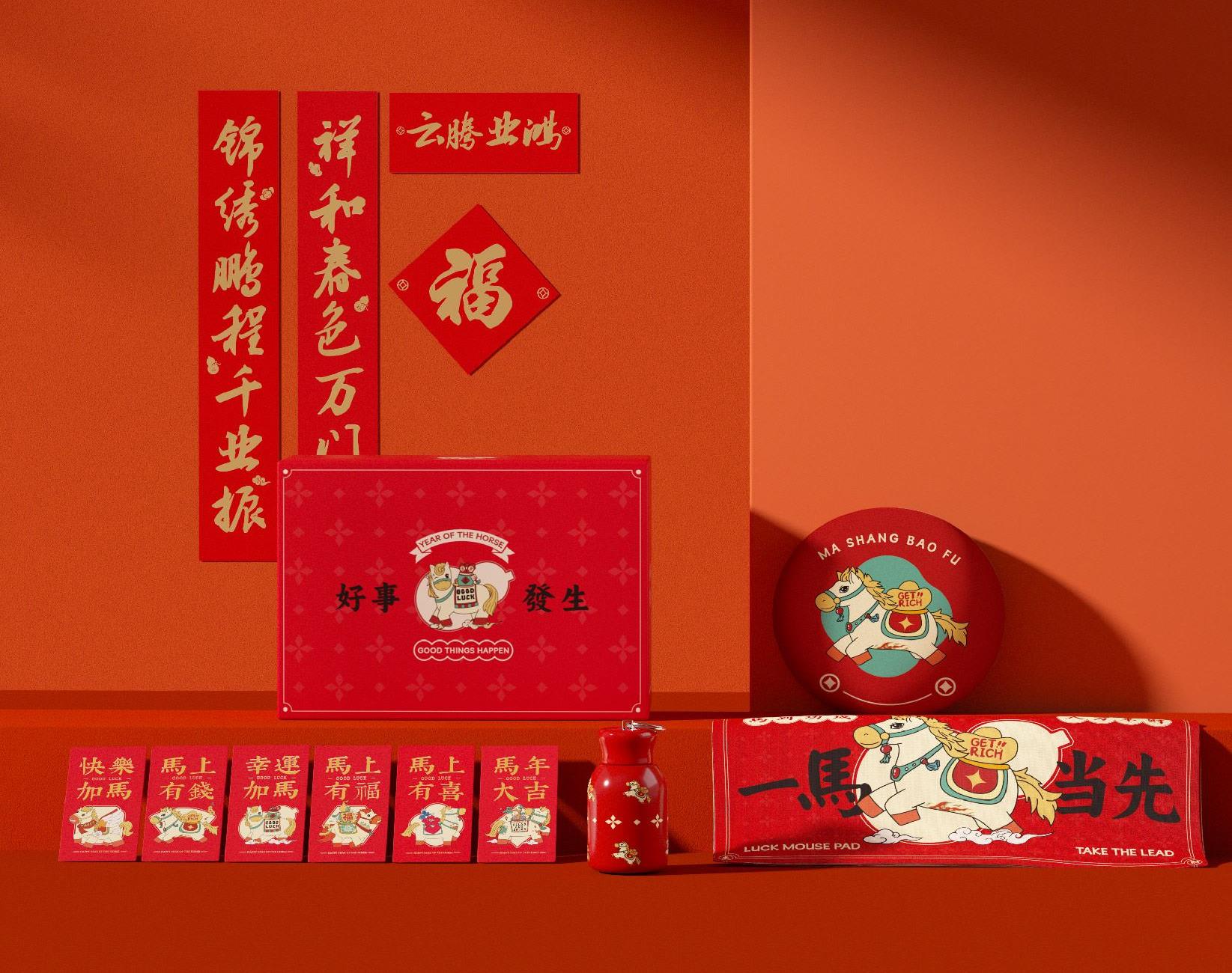 礼盒配置 提盒x1 马上抱富·暖手捂x1 马上来财·胖胖杯x1 壹马当先·鼠标垫x1 对联福字x1 红包x6、贺卡x1