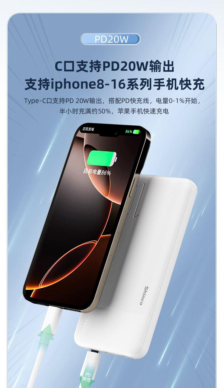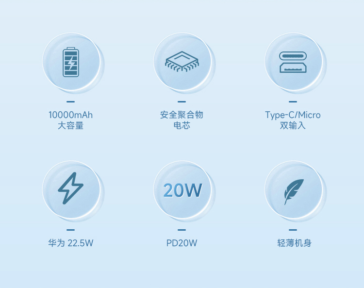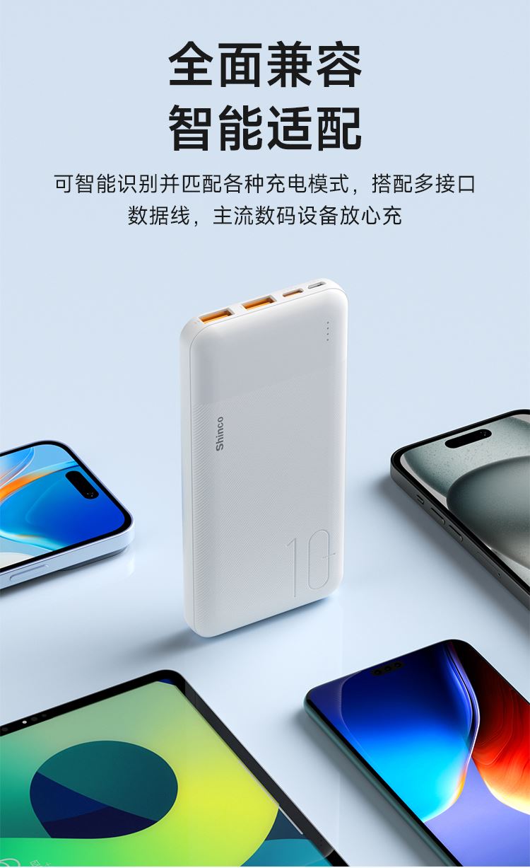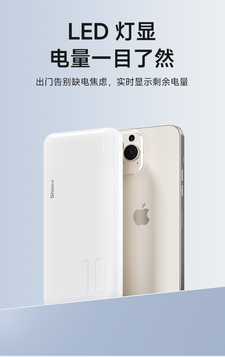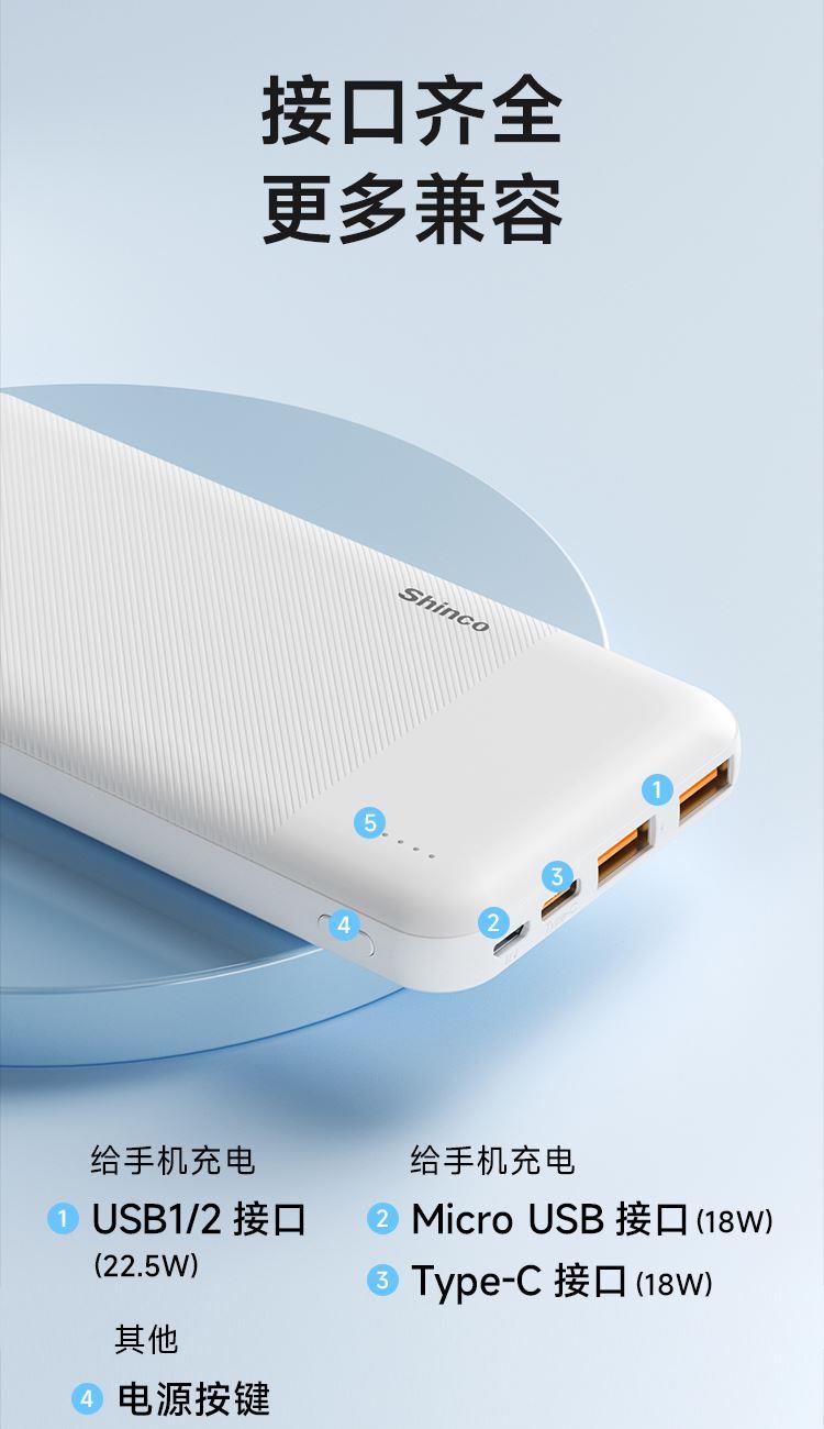 类别:锂离子聚合物电池 容量: 10000mAh 3.7V 37Wh 额定容量: 5300mAh(5V⎓3A) 1、可同时充3台设备、充电不排队、双USB+Type-C输出口,可同时为3台设备输出充电,充电不用等待 2、大容量.不虚标、10000mAh出行不断电,电量没烦恼 3、Micro/Type-C双输入、蓄电多选择两种主流充电输入方式,双向快充,充电无需等待