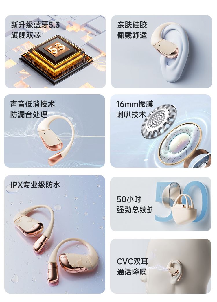 1、运动狂甩不掉、稳固不移位、SFE贴耳设计,奔跑,跳跃不脱落