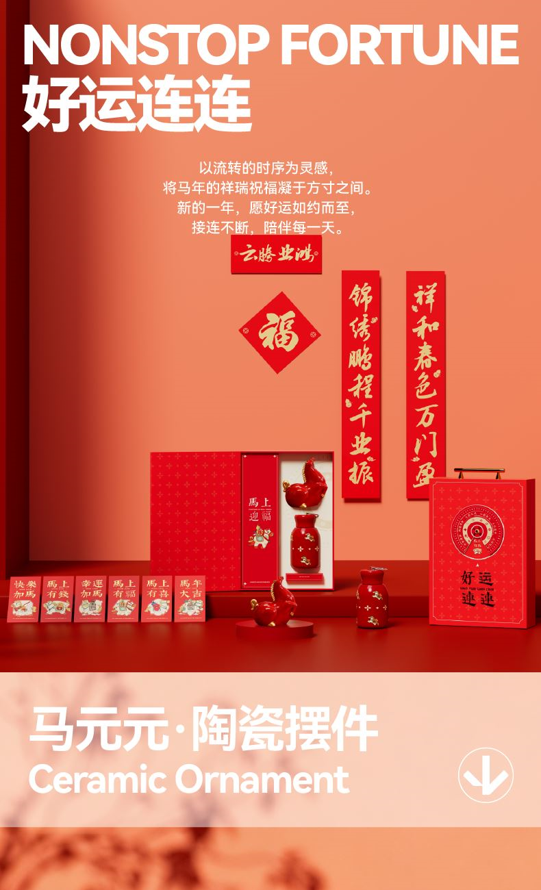 以流转的时序为灵感,将马年的祥瑞祝福凝于方寸之间。新的一年,愿好运如约而至,接连不断,陪伴每一天。