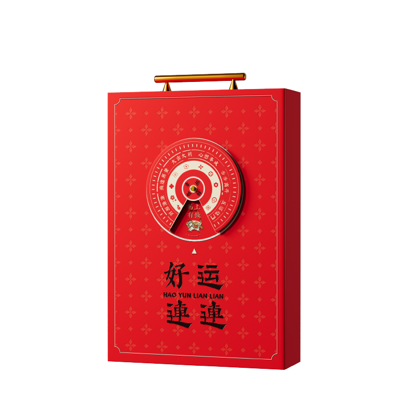 礼盒表面巧妙融入可转动圆盘,暗合“时来运转”的巧思,每转动一次,就切换一幅精心绘制的插画,对应一句马年祝福。插画风格现代活泼,色彩温暖,让传统生肖礼盒变得更生动有趣。打开礼盒的过程,也成为传递心意的一种方式,在互动中增添惊喜与祝福。